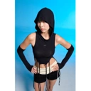 เสื้อกล้ามครอปมีฮู้ด เนื้อผ้ายืดหยุ่นเข้ารูป ดีเทลแต่งขาดช่วงอก มาพร้อมกับสายช่วงปลายเสื้อ อัพลุคให้ดูเก๋ขึ้นมาอีกระดับ รุ่นนี้มีปลอกแขนให้ด้วย สาวสายแฟห้ามพลาด!